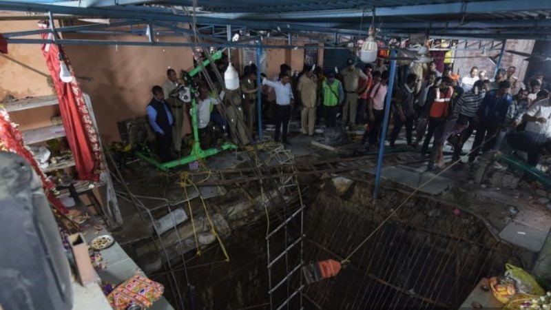 Decenas de fieles celebraban el jueves una gran fiesta religiosa en la ciudad de Indore cuando el suelo cedió y cayeron a un pozo rodeado por escaleras usado en rituales religiosos.