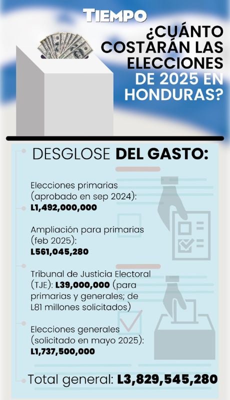 La suma solicitada para las elecciones generales de noviembre no llega sola. Se suma a los fondos ya aprobados para las elecciones primarias e internas celebradas el pasado 9 de marzo, lo que dispara el total del proceso electoral 2025 a más de 3,829 millones de lempiras.