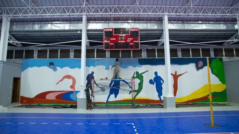 En el gimnasio ya se afinan los últimos detalles. Se logra observar que el sitio es amplio y lleno de vivacidad.