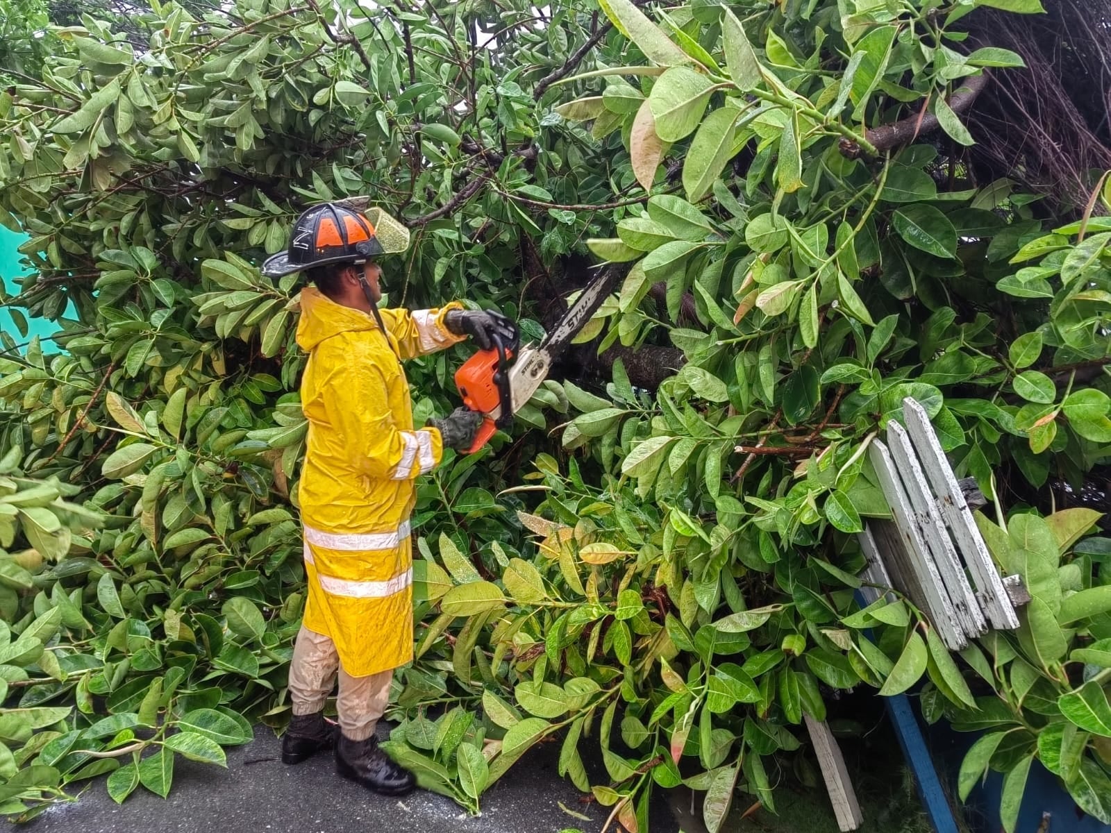 Miembros del Cuerpo de Bomberos realizaron un corte de árbol que había caído sobre la vía pública y obstaculizaba el tránsito de vehículos y peatones en el sector de French Harbour.