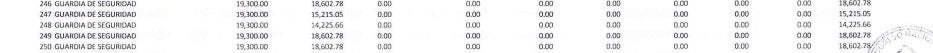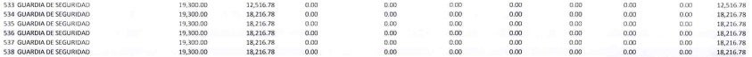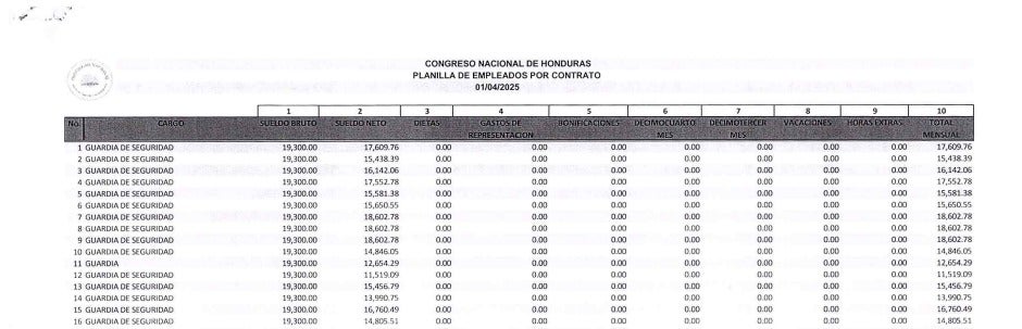 Los 38 guardias contratados ganan 19,300 lempiras cada uno. Mientras que los oficiales de seguridad III, uno gana 19,300 lempiras y otro 20,000 lempiras.