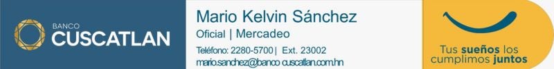 Invitamos a todos los hondureños a visitar la página web www.bancocuscatlan.com y seguir las redes sociales, donde encontrarán información de productos y servicios diseñados para cada una de sus necesidades.