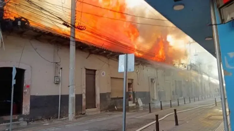 El siniestro, que generó alarma en comerciantes y vecinos del centro histórico, se ha controlado por al menos cinco unidades bomberiles, que durante varias horas combatieron las llamas y evitaron que se extendieran a negocios aledaños. Sin embargo, la labor se dificultó por los trabajos de remodelación vial en la zona y la presencia de transformadores y cables de alta tensión.