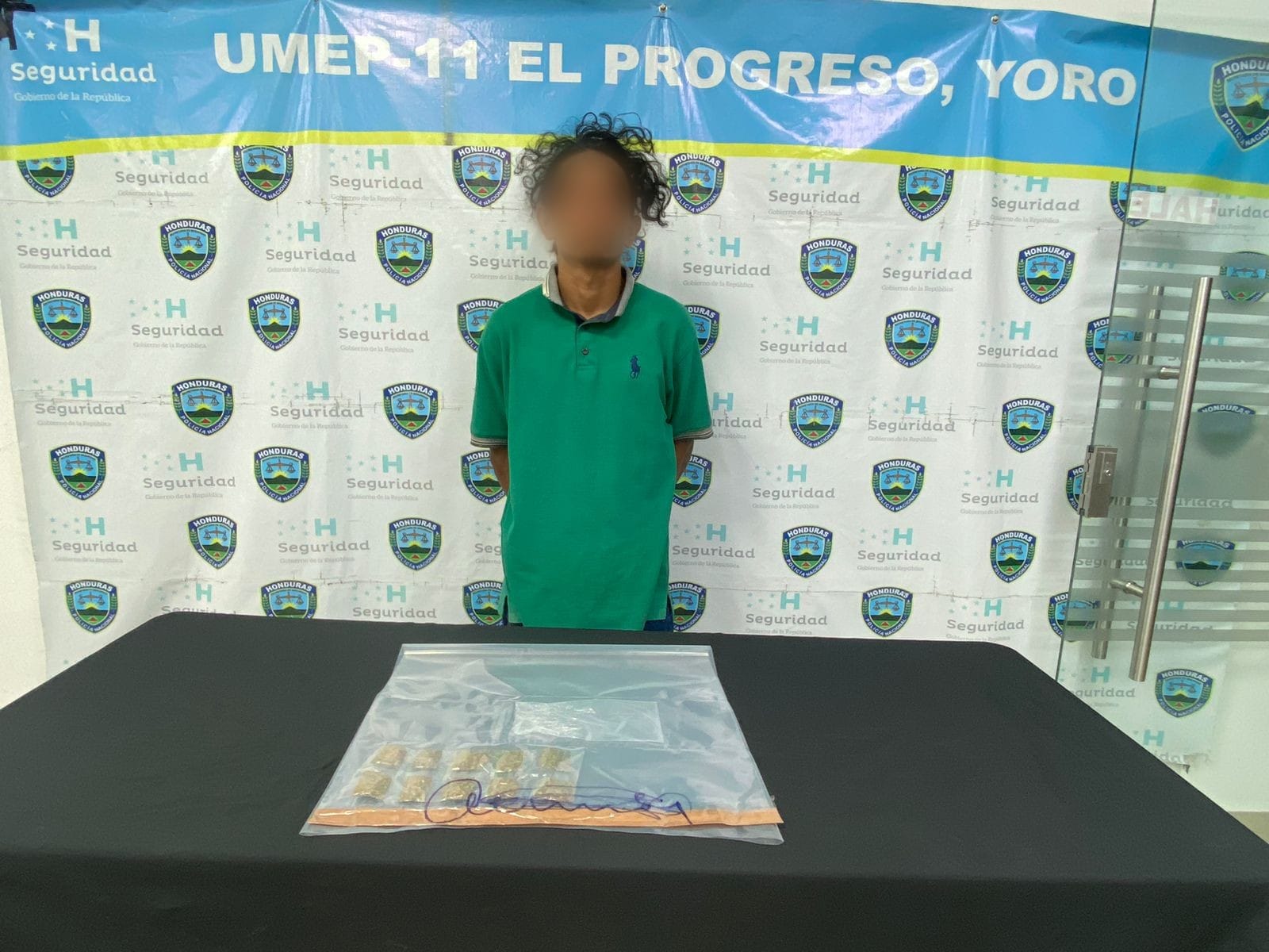Redacción. Mediante patrullas preventivas, los agentes de la Dirección Nacional de Prevención y Seguridad Comunitaria (DNPSC) capturaron a un individuo, a quien se le presume responsable del delito de tráfico de drogas ilícitas en El Progreso, Yoro.