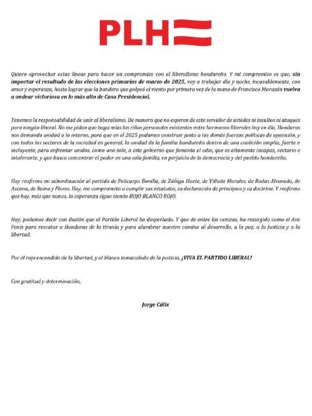 En ese sentido, exhortó su deseo de reconstruir el país y renovar su compromiso con el liberalismo y el pueblo hondureño. Asimismo, resaltó su responsabilidad por trabajar incansablemente para que la bandera liberal vuelva a ondear en Casa Presidencial.