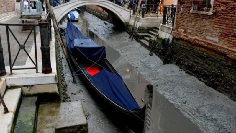 Redacción. Los famosos canales de Venecia en Italia están completamente secos debido a una escasez de agua que impide que las tradicionales góndolas paseen a los turistas en pleno carnaval.