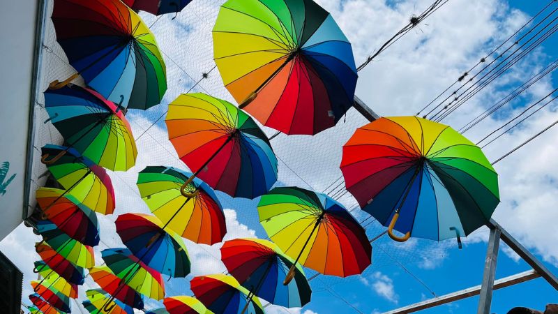 Por ello ha agregado a sus múltiples atractivos el «Paseo de la Felicidad» y el «Paseo de las Sombrillas», acompañado del «Columpio 0820».