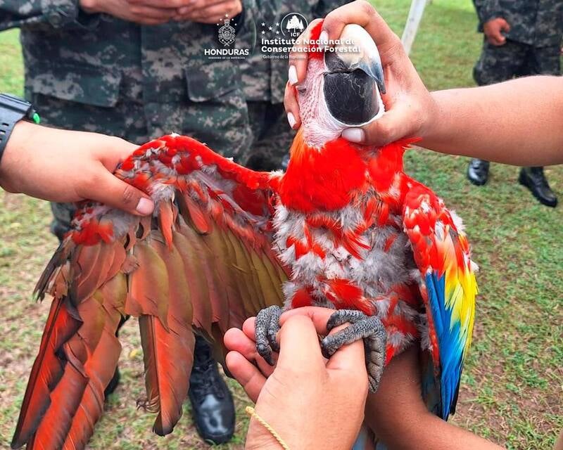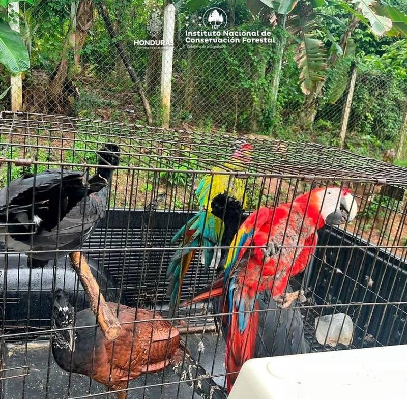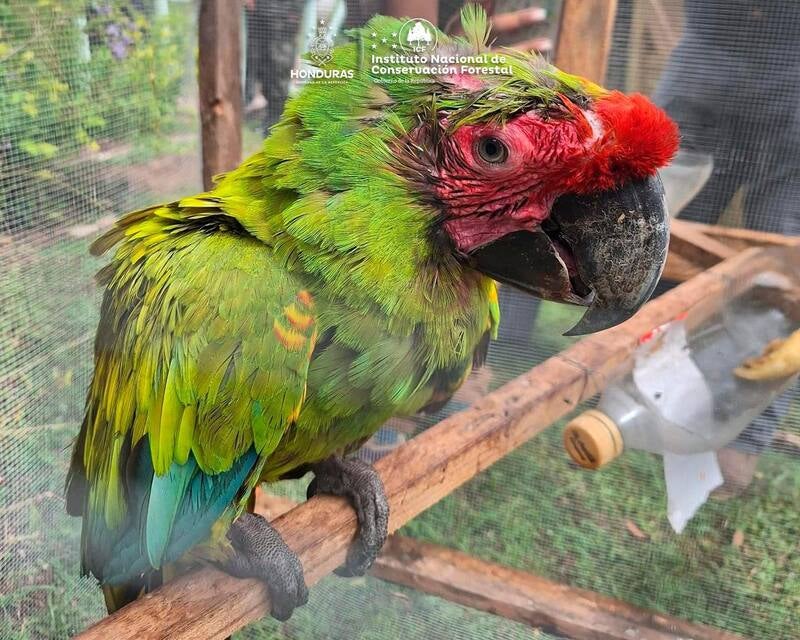 El sujeto tenía en su posesión: 3 guaras rojas, cuyo nombre científico es Ara macao, en estado de vulnerabilidad; 2 guaras verdes, Ara ambiguus, una especie en peligro de extinción; un perico garganta roja, Psittacara holochlorus.