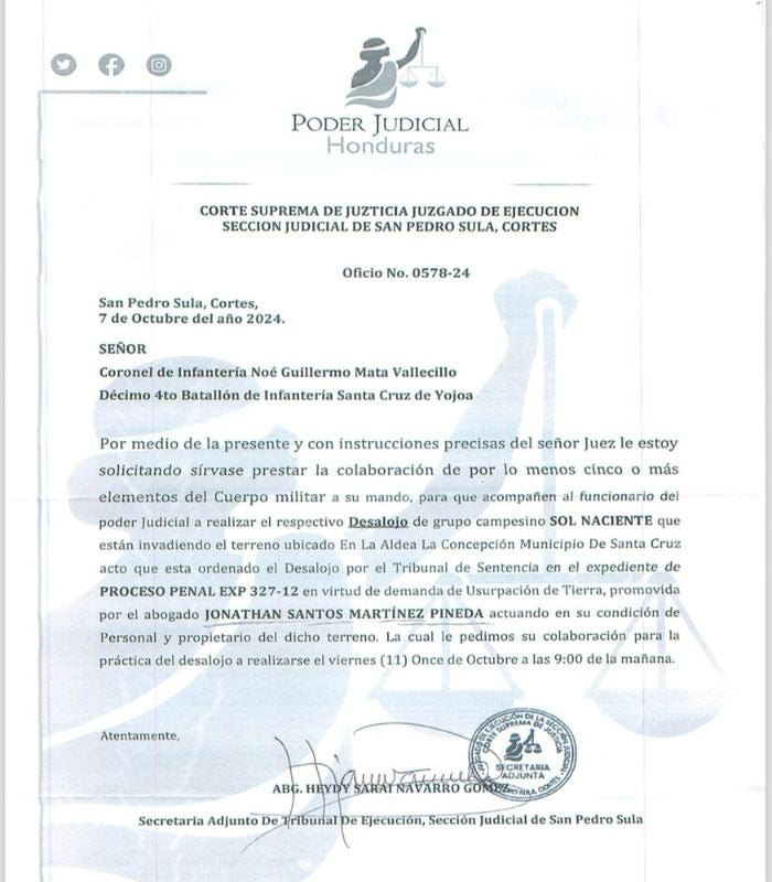 - Nimrod Gustavo Cárcamo, receptor 2 del Juzgado de Letras de lo Penal de San Pedro Sula.