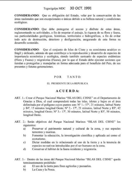 El presidente del Comité para la Defensa de los Derechos Humanos en Honduras (Codeh), Hugo Maldonado, aseguró que «Islas del Cisne es una área protegida y publicada en el Diario Oficial la Gaceta. Por lo tanto, debe protegerse y no podrá construirse la cárcel ahí. La licencia ambiental es pico transparente y debe dejarse en suspenso».