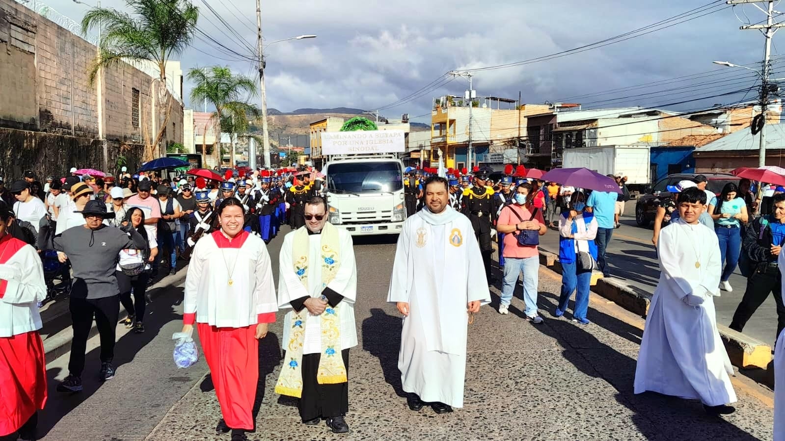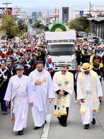 Carlo Magno Nuñez, rector de la Basílica Menor de Suyapa al frente de la procesión.