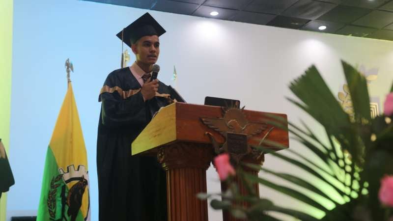 El representante de los graduandos, Alex Benjamín Cubas, compartió unas emotivas palabras en nombre de sus compañeros. Él expresó su gratitud y recordando los desafíos superados y los sueños alcanzados.