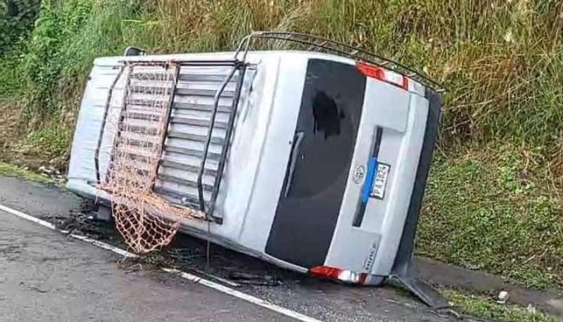 Según testigos, el conductor del vehículo invadió el carril contrario y luego impactó contra el bus, provocando que la unidad de transporte volcara fuera de la calzada.