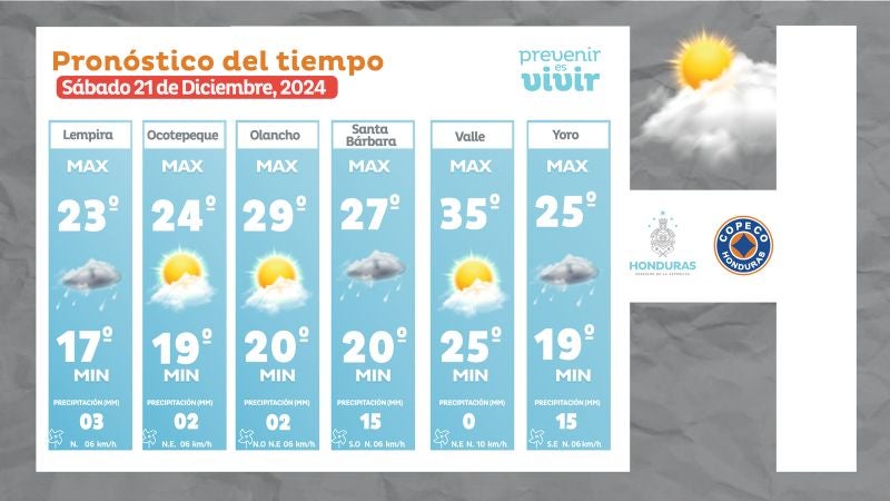 - Lempira: 23° grados como máxima, 17° como mínimas (03 milímetros)