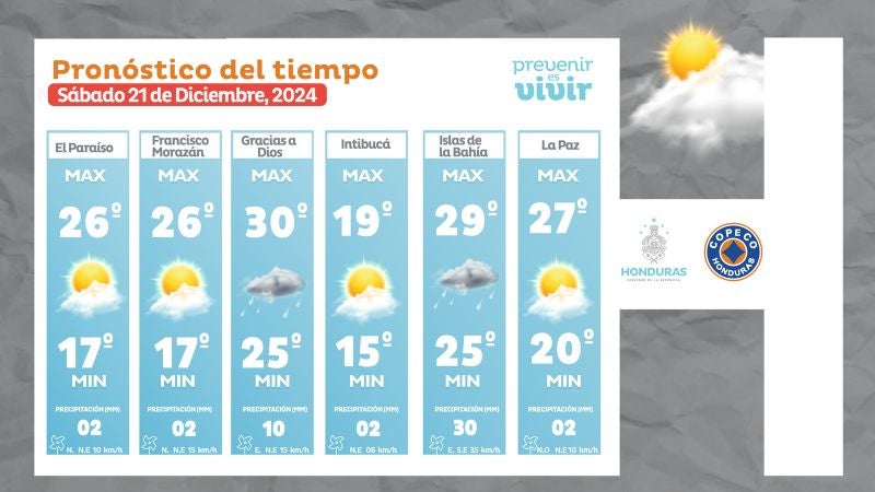 - Comayagua: 26° como máximo, 20° como mínimas (03 milímetros)