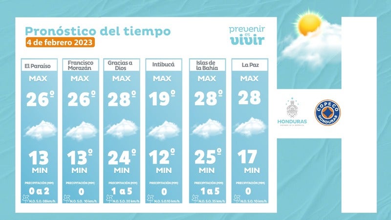 - Intibucá: 19° como máxima, 12° como mínimas (0 milímetros)