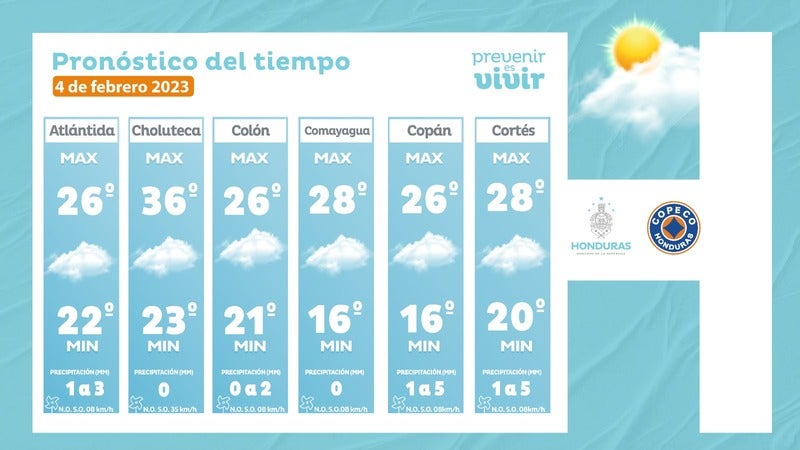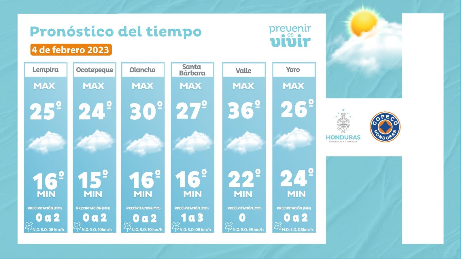 - Choluteca: 36° como máximo, 23° como mínimas (0 milímetros)