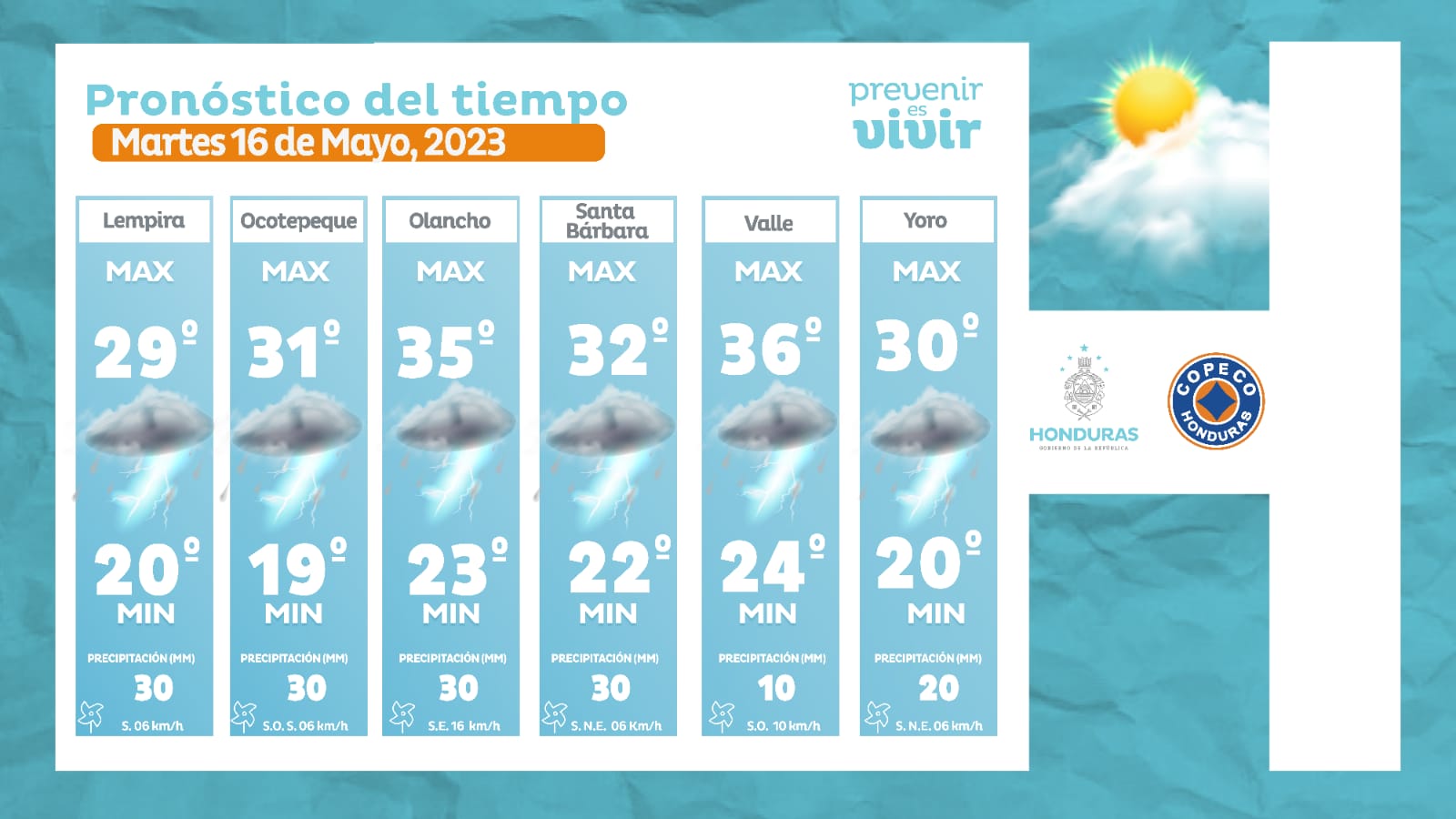 - Choluteca: 36° como máximo, 24° como mínimas (30 milímetros)