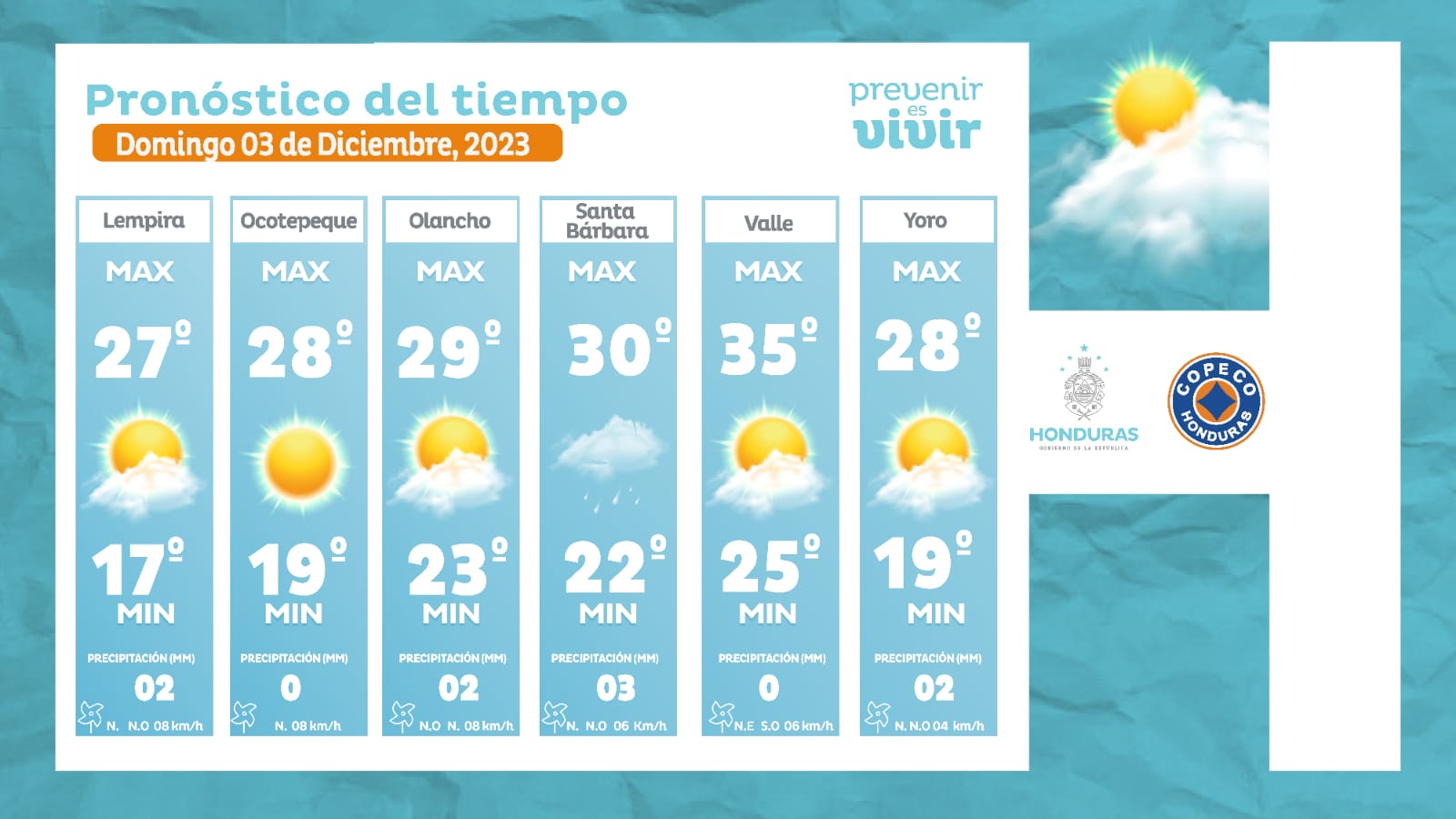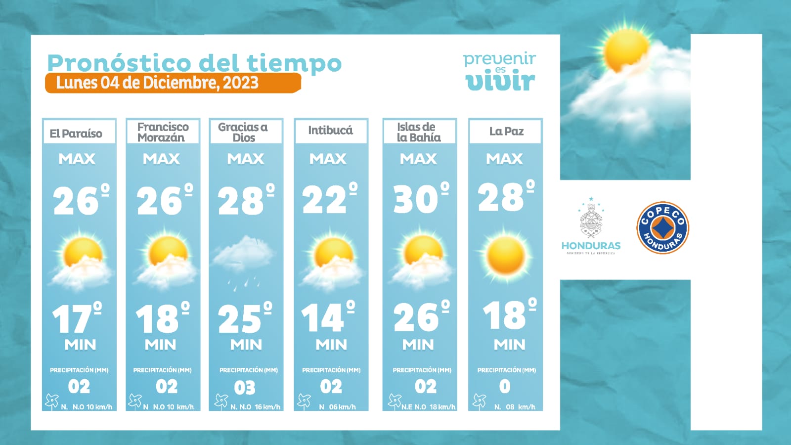 - Ocotepeque: 28° como máxima, 19° como mínima (0 milímetros).