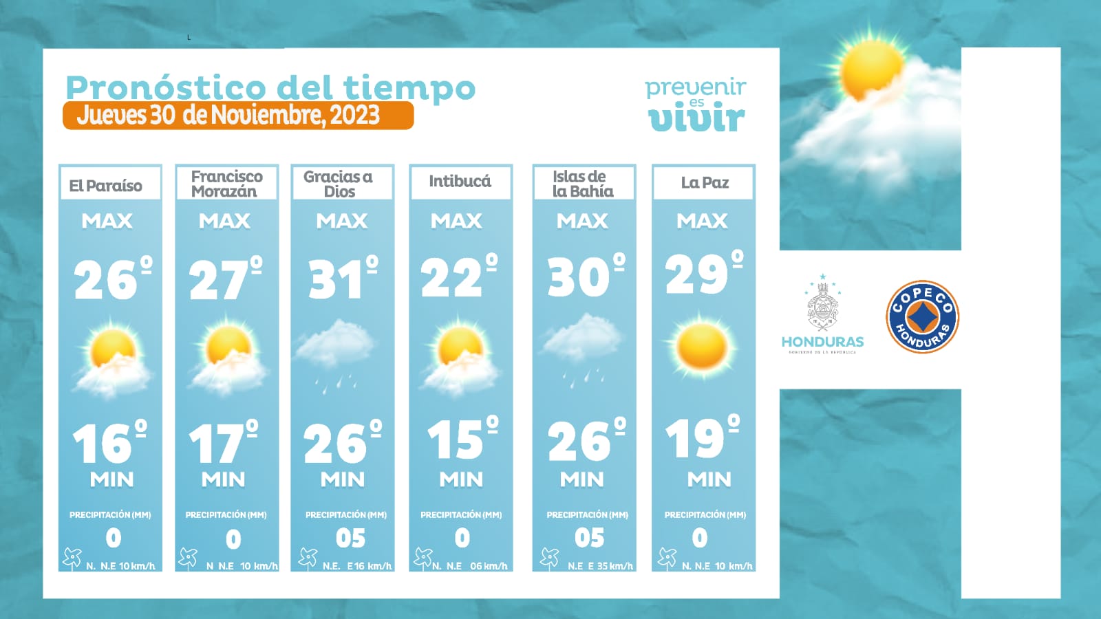 - Gracias a Dios: 31° como máximo, 26° como mínima (05 milímetros).