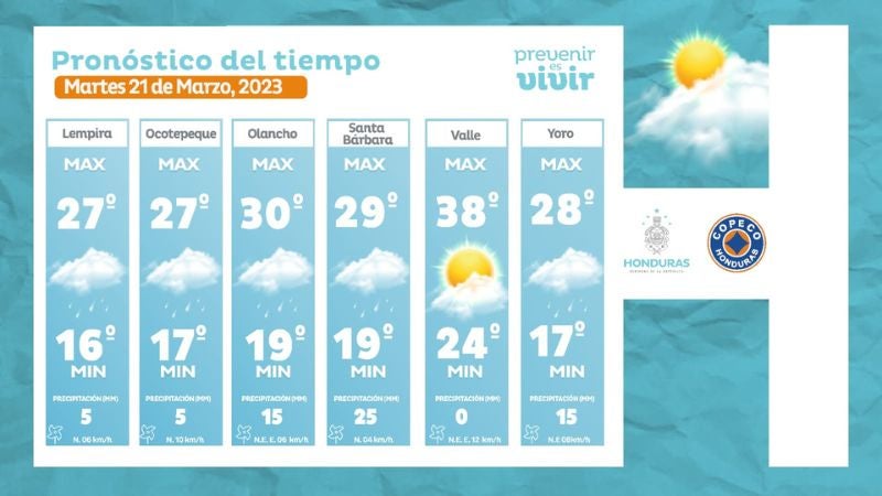 - Ocotepeque: 27° como máxima, 17° como máximas (5 milímetros)