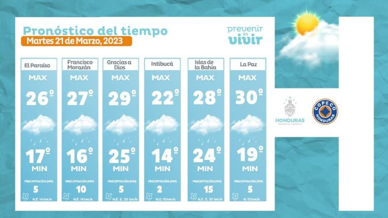 Tegucigalpa, Honduras.– Las autoridades del Centro de Estudios Atmosféricos, Oceanográficos y Sismológicos (CENAOS) pronosticaron lluvias débiles para este martes 21 de marzo en varias zonas del país.