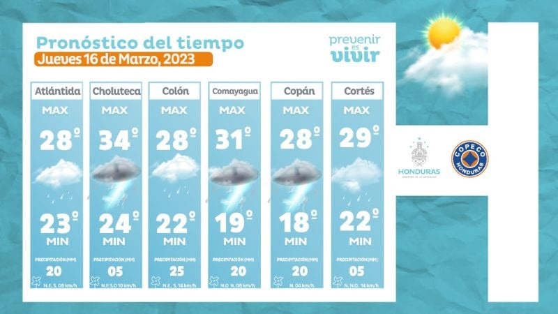 - Choluteca: 34° como máximo, 24° como mínimas (5 milímetros)