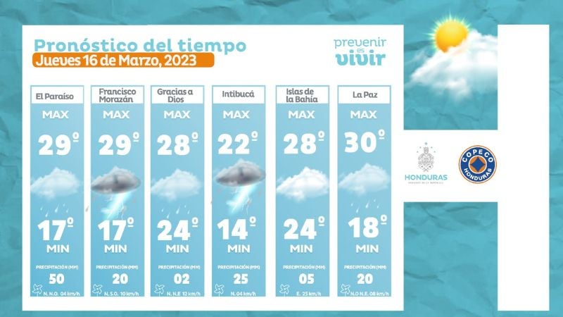 - San Pedro Sula: 29° como máximo, 22° como mínimas (05 milímetros)