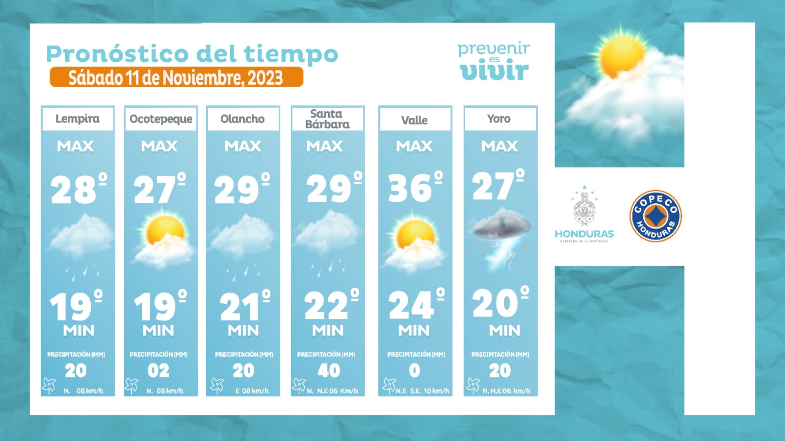 - Intibucá: 22° como máxima, 15° como mínimas (03 milímetros)