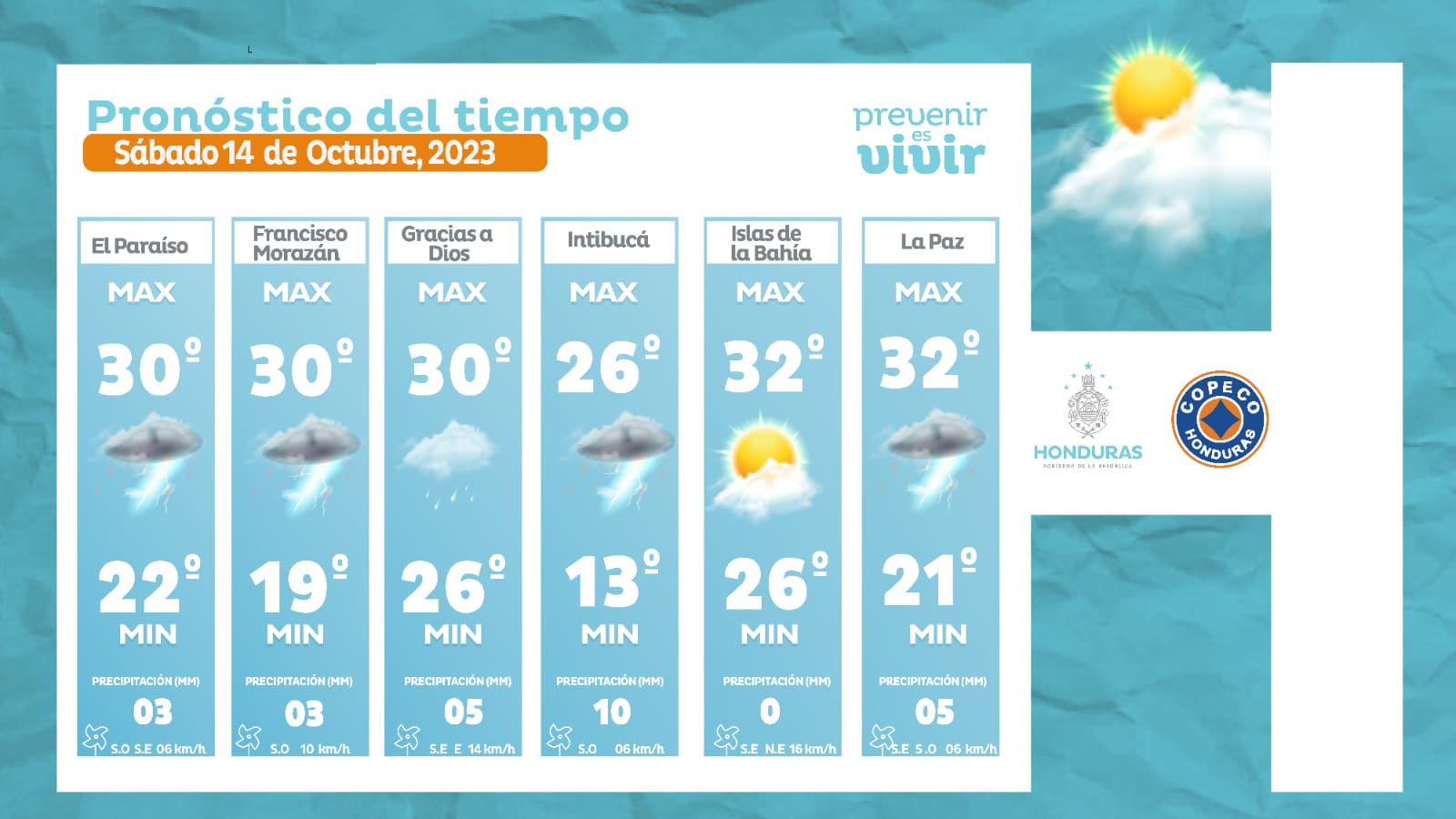 - Comayagua: 32° como máximo, 21° como mínimas (10 milímetros)