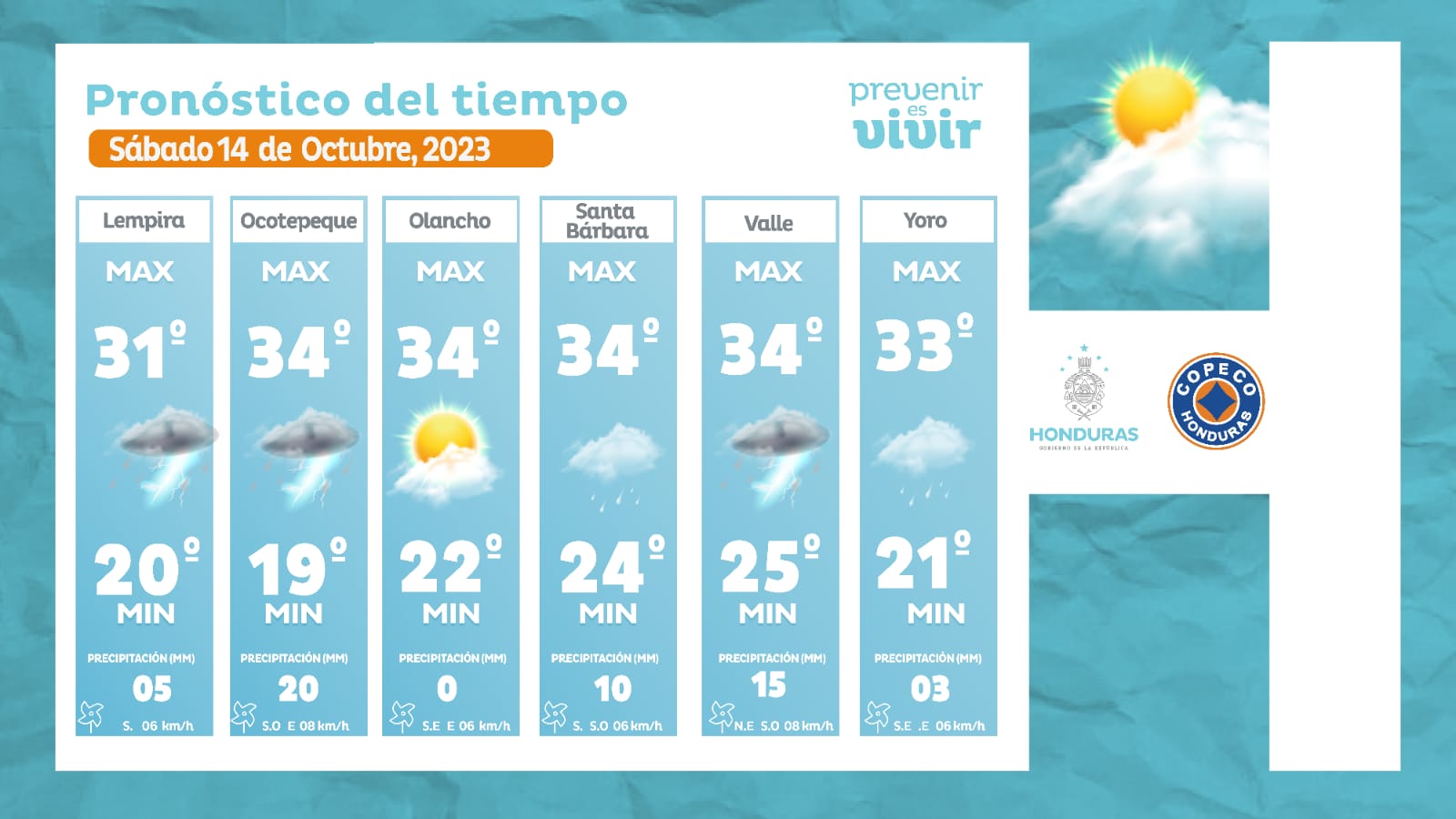 - Ocotepeque: 34° como máxima, 19° como mínimas (20 milímetros)