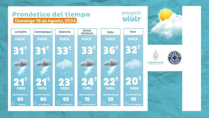 - Comayagua: 33° como máximo, 21° como mínima (05 milímetros).