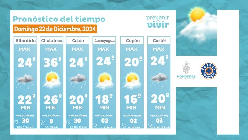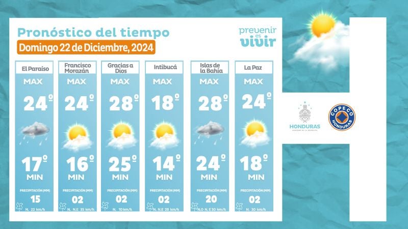 - San Pedro Sula: 24° como máximo, 20° como mínimas (03 milímetros)