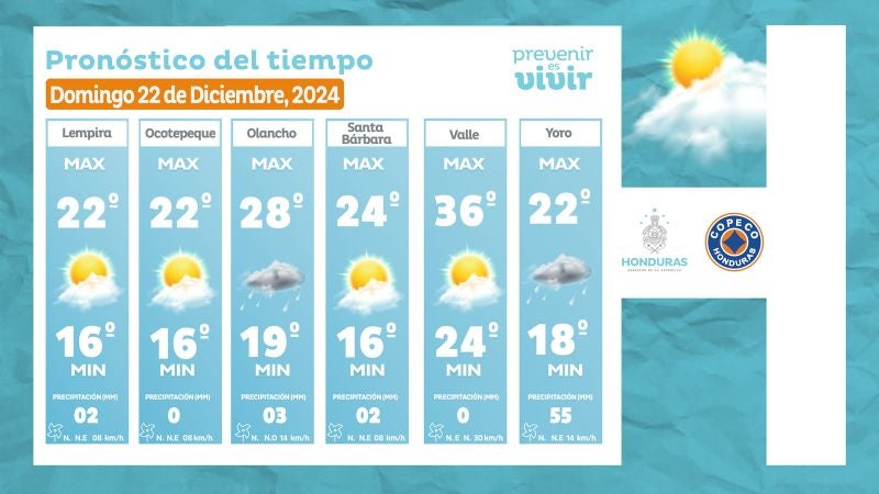 - Ocotepeque: 22° como máxima, 16° como mínimas (0 milímetros)