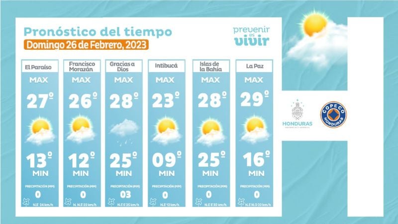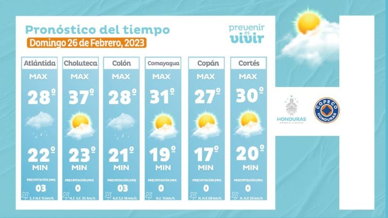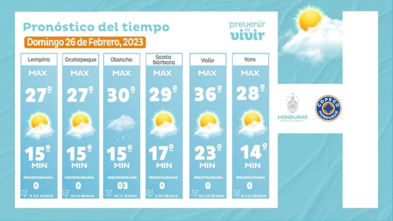 Tegucigalpa, Honduras.– Las autoridades del Centro de Estudios Atmosféricos, Oceanográficos y Sismológicos (CENAOS) pronosticaron condiciones secas y cálidas sobre la mayor parte del territorio nacional para este domingo 26 de febrero de 2023.