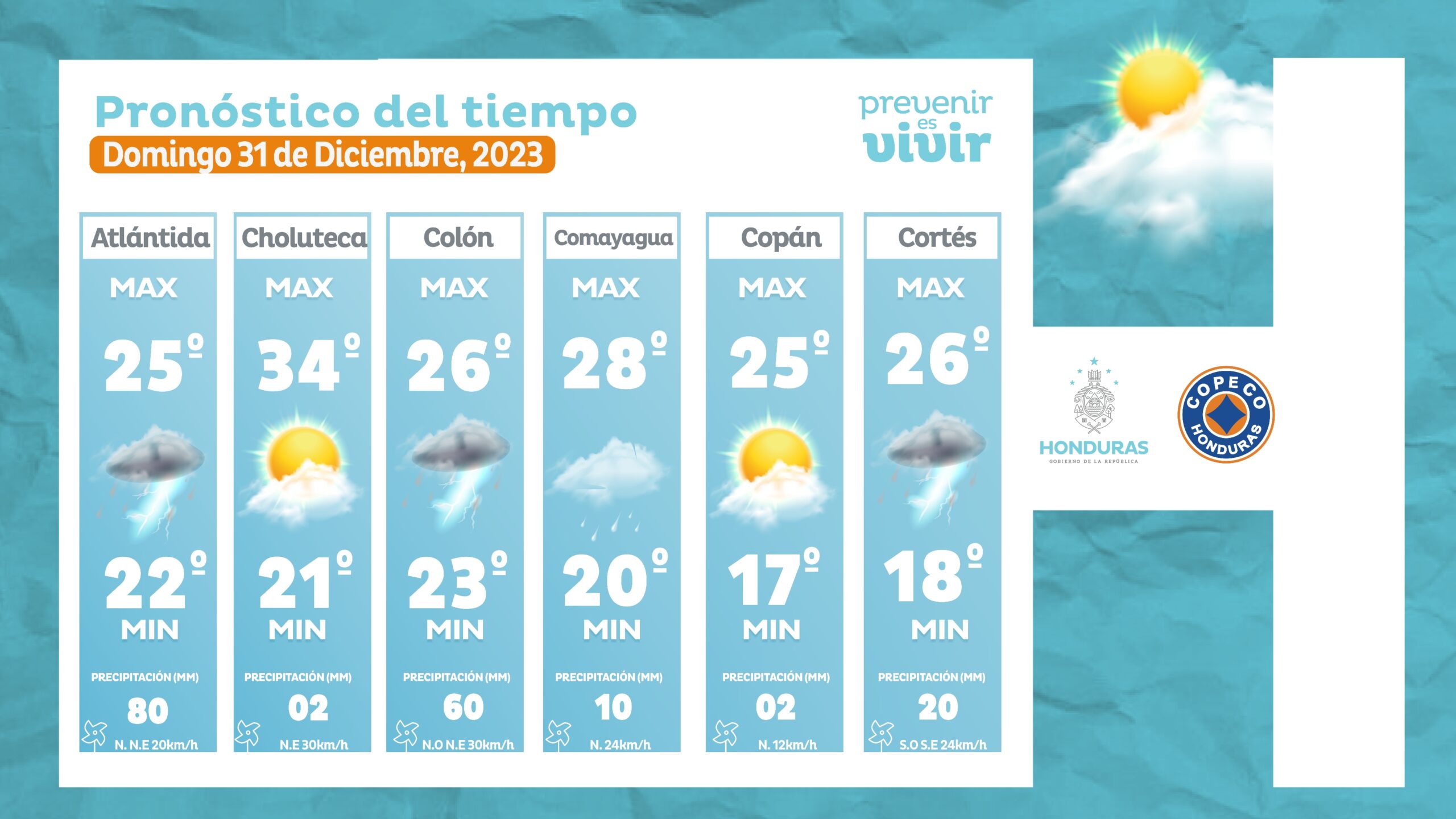 - Choluteca: 34° como máximo, 21° como mínima (02 milímetros).