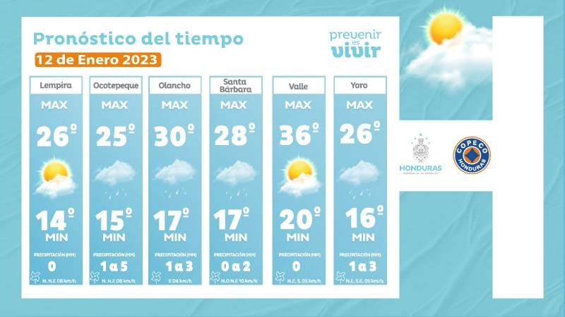 - Lempira: 26° grados como máxima, 14° como mínimas (0 milímetros)