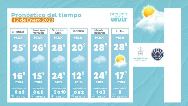 - Intibucá: 20 ° como máxima, 12° como mínimas (0 a 2 milímetros)
