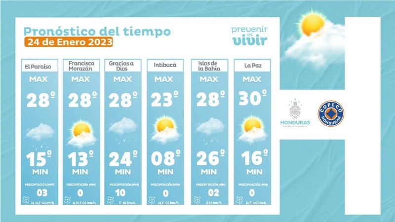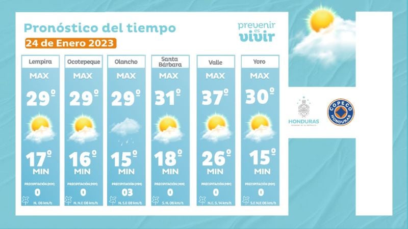 - Olancho: 29° como máxima, 15° como mínimas (03 milímetros)