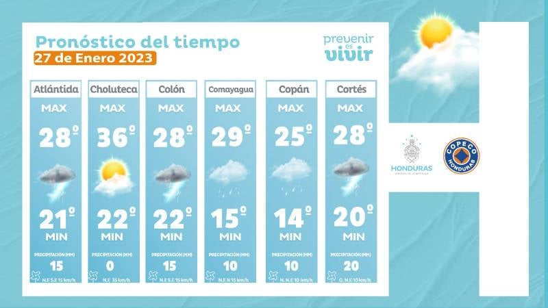 - Tegucigalpa: 25° como máximo, 14° como mínimas (02 milímetros)
