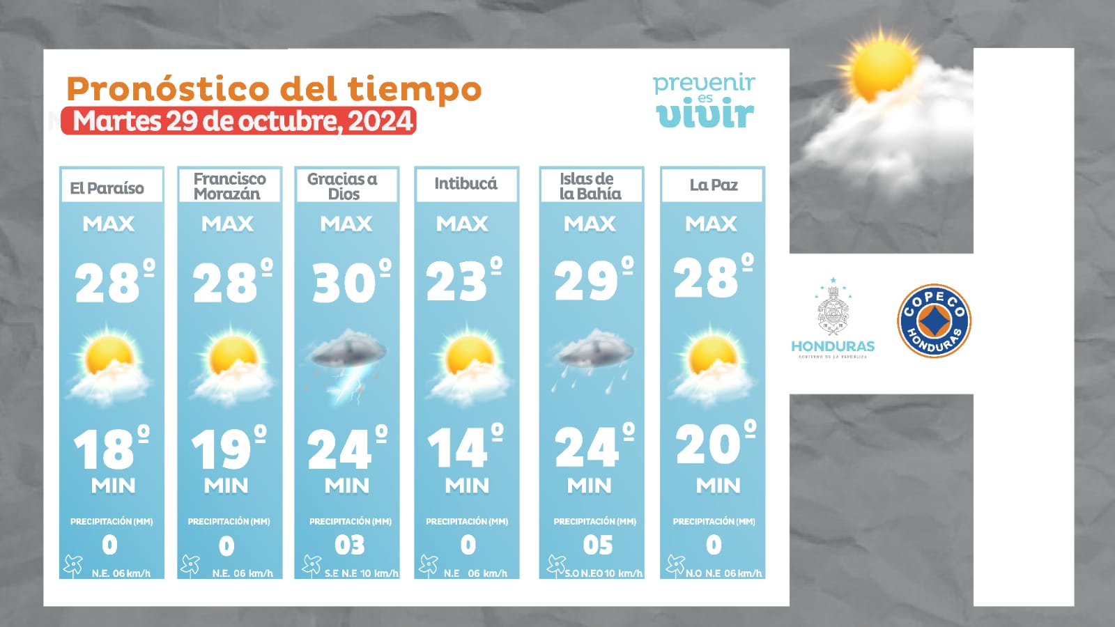 - Roatán: 29° como máxima, 24° como mínimas (05 milímetros)