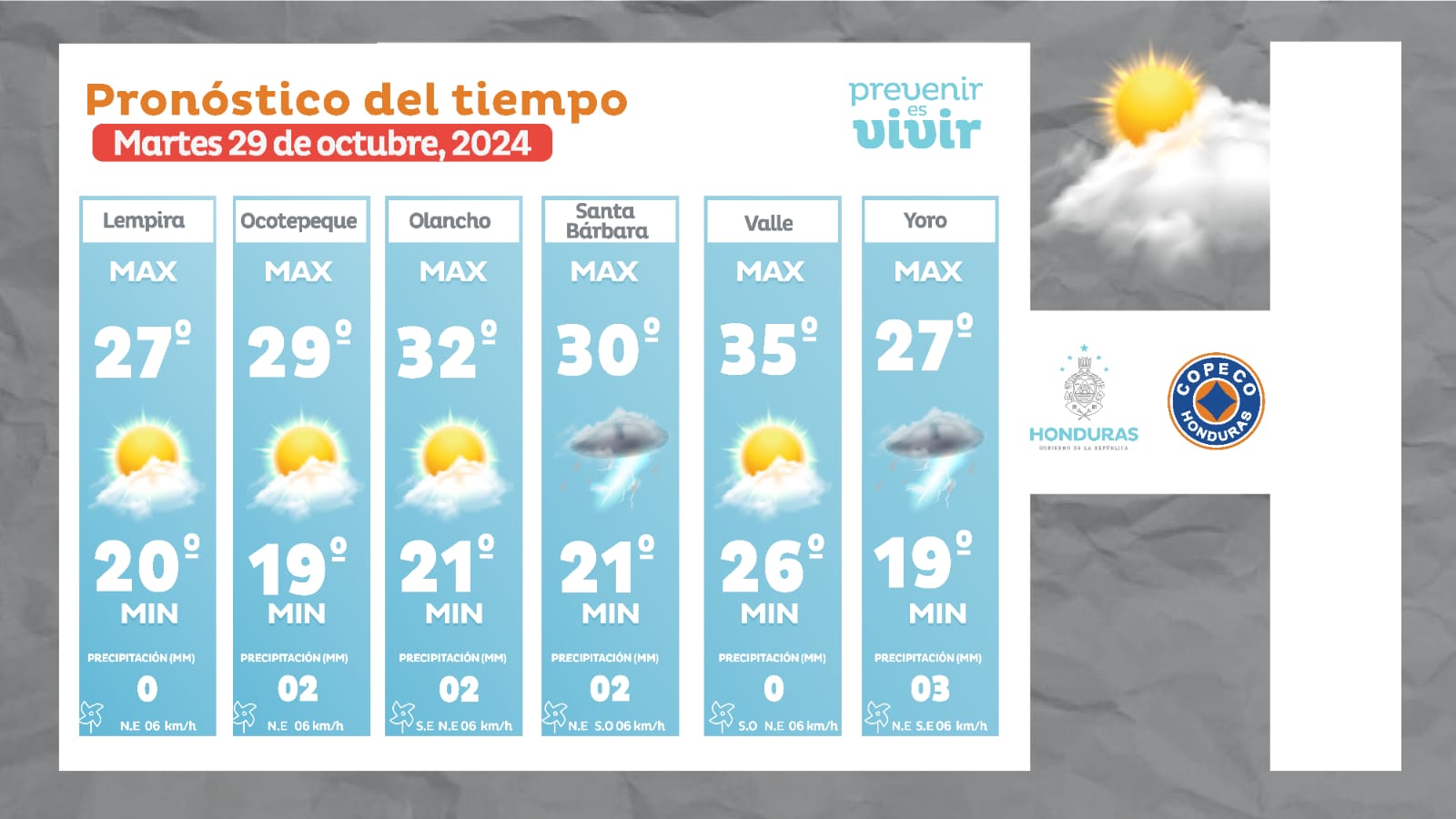 - Ocotepeque: 29° como máxima, 19° como máximas (02 milímetros)