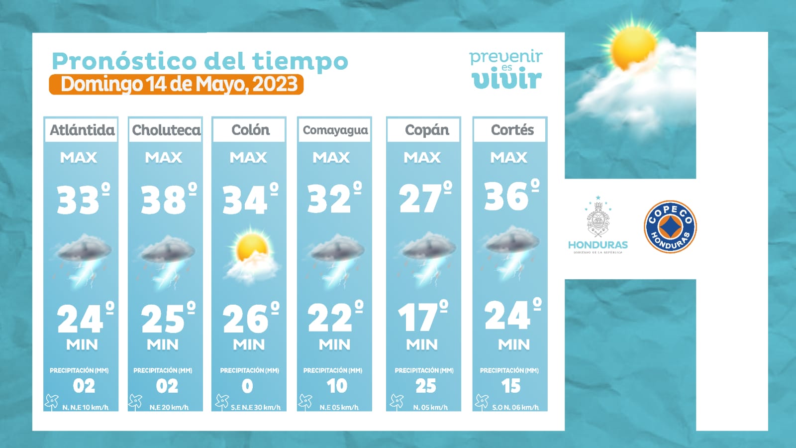 - Choluteca: 38° como máximo, 25° como mínimas (02 milímetros)
