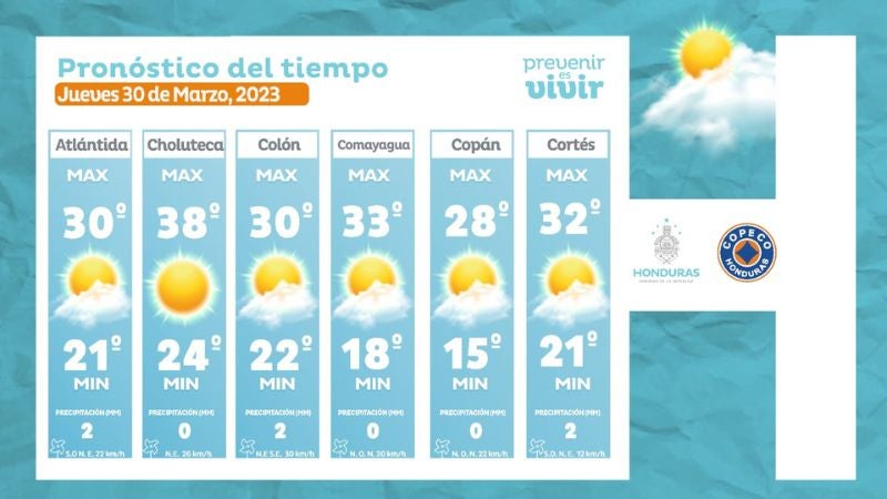 - Choluteca: 38° como máximo, 24° como mínimas (0 milímetros)