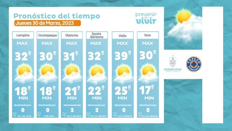 - Ocotepeque: 30° como máxima, 18° como máximas (0 milímetros)