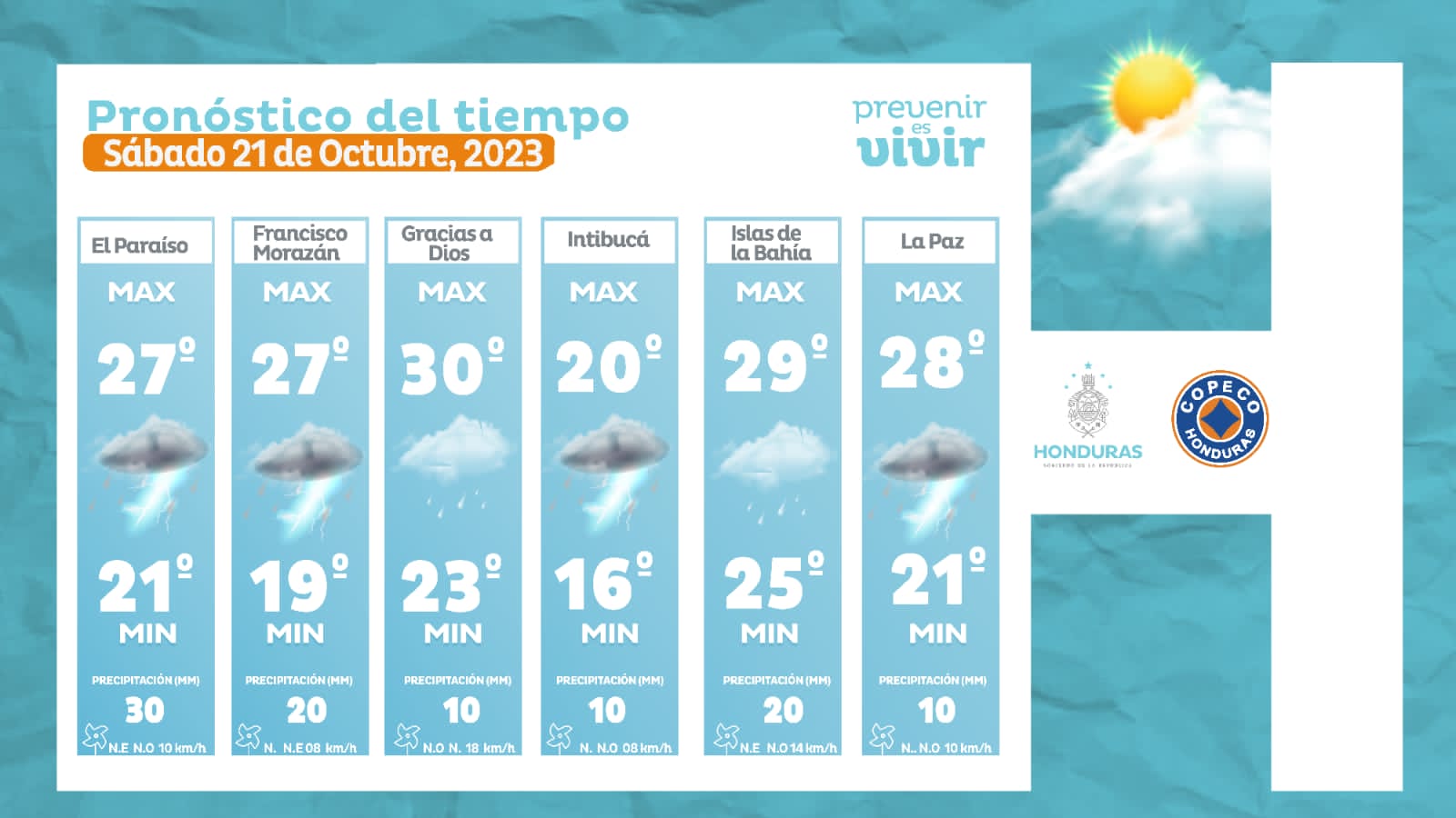 - La Ceiba: 26° como máximo, 24° como mínimas (05 milímetros)