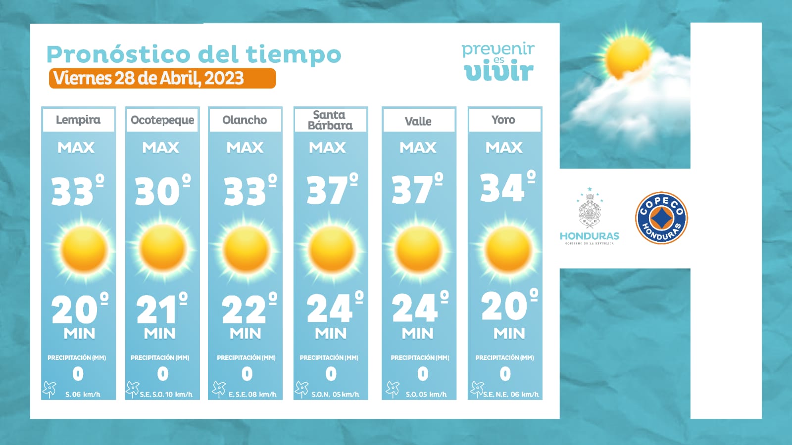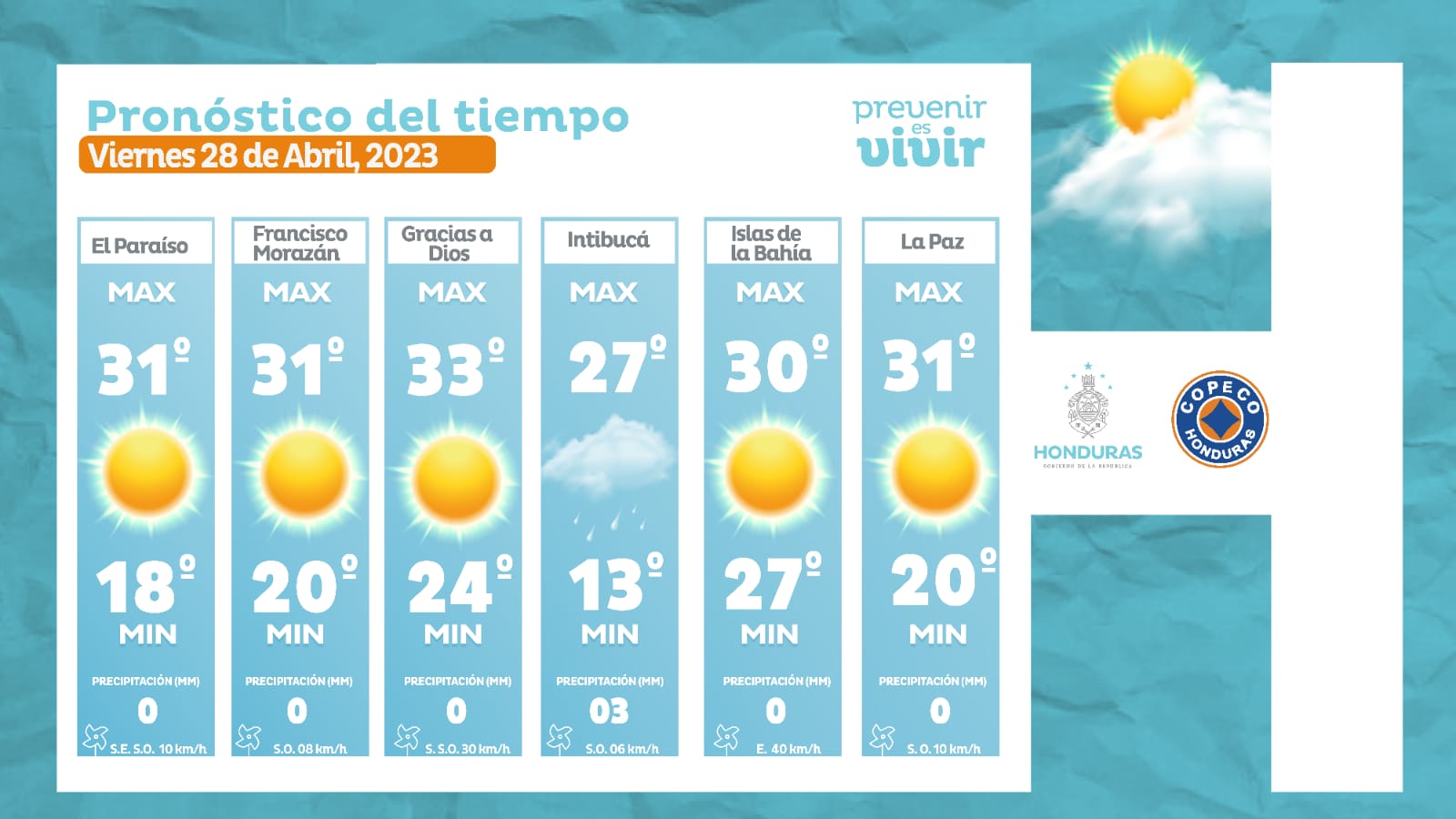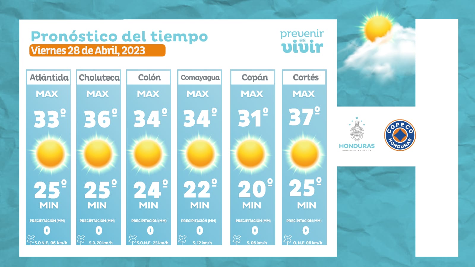 Honduras. Las autoridades del Centro de Estudios Atmosféricos, Oceanográficos y Sismológicos (CENAOS) informaron que este viernes, 27 abril, se registrarán secas y cálidas en la mayor parte del territorio nacional.
