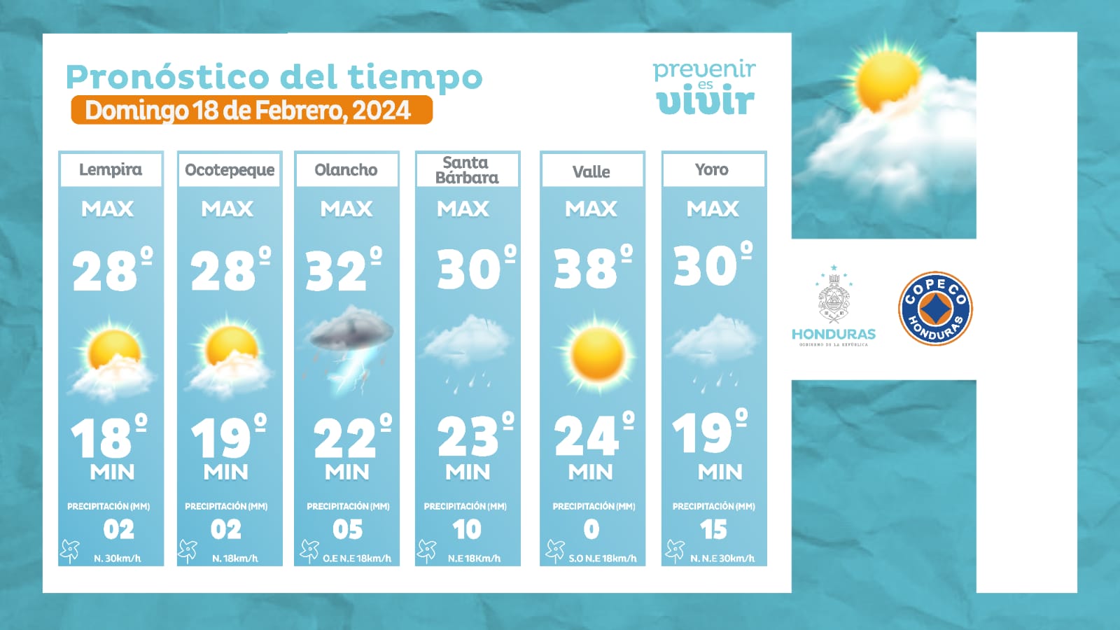 - Olancho: 32° como máxima, 22° como mínimas (05 milímetros)