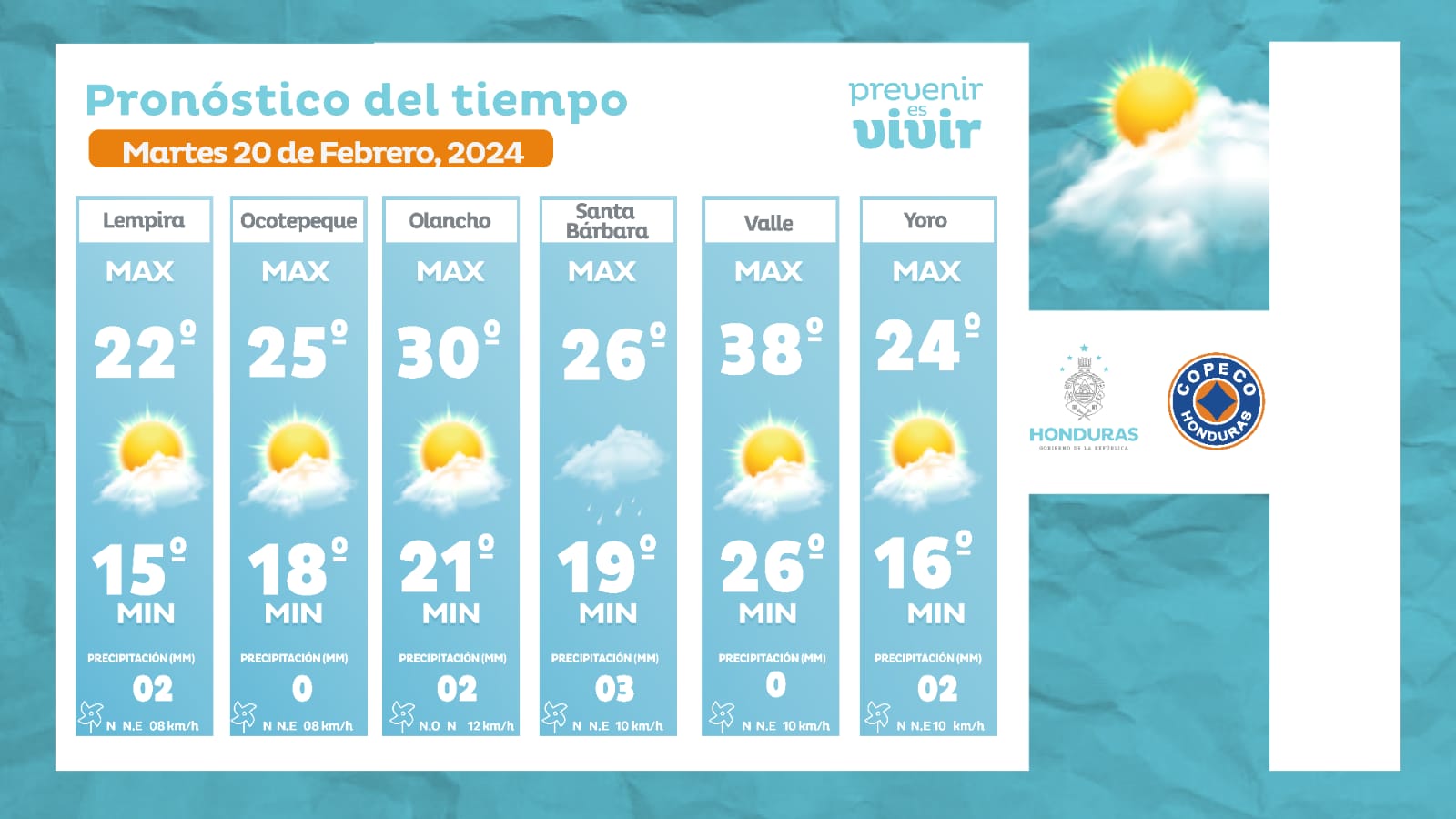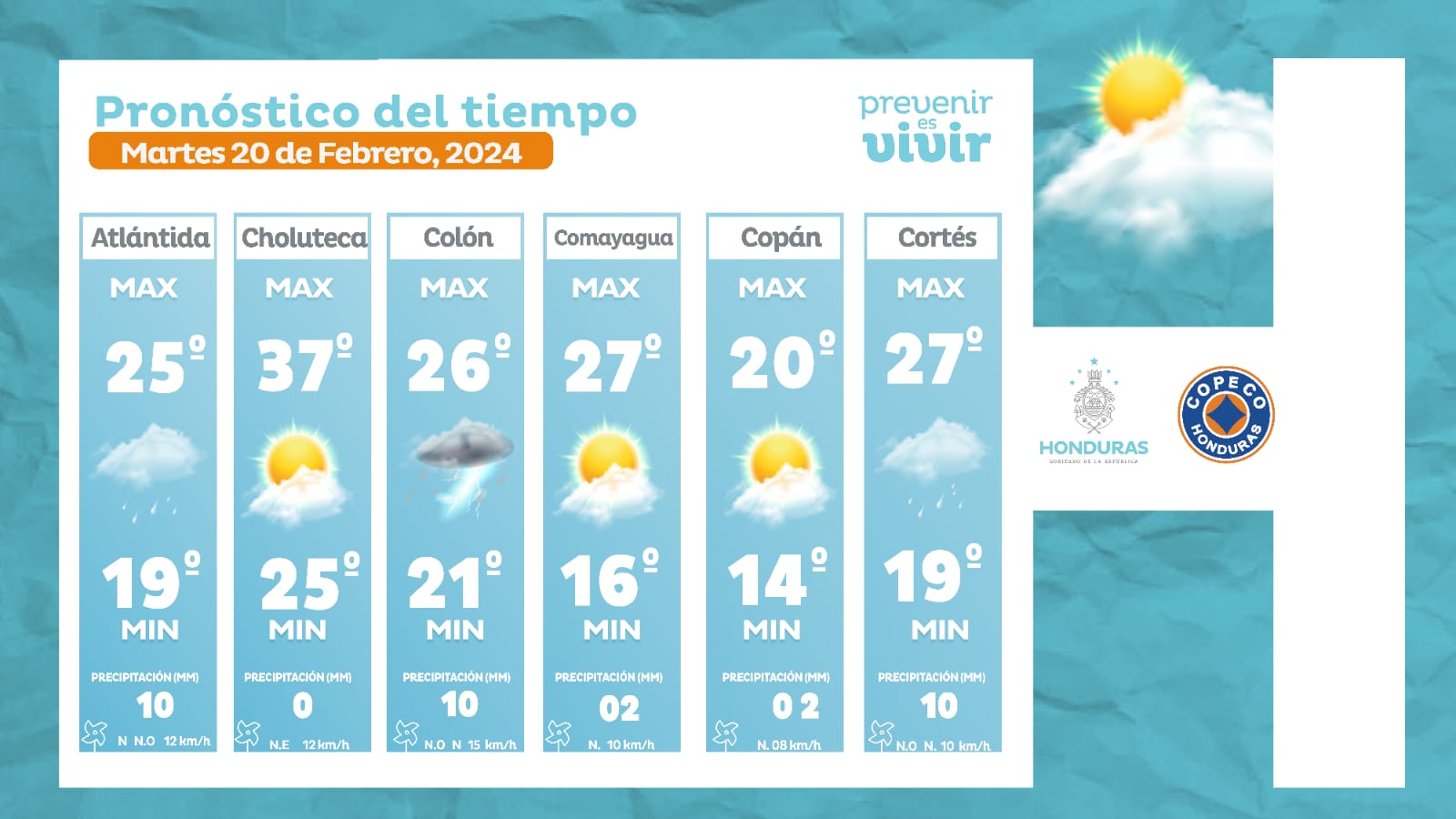 - Ocotepeque: 25° como máxima, 18° como mínimas (0 milímetros)