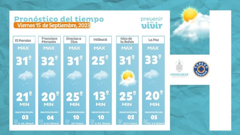 - Olancho: 34° como máxima, 22° como mínimas (05 milímetros)